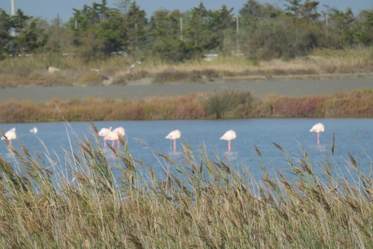 Ansonsten ist die Camargue vor allem bekannt als Naturschutzgebiet und für ihre einzigartigen weißen, wilden Camargue-Pferde. Ebenso gibt es hier aber auch große Stiere und Flamingos.