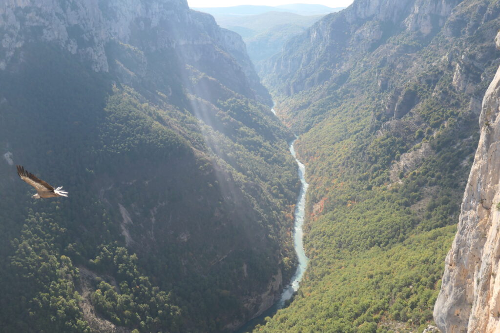 Von der wunderschönen Camargue geht es für uns weiter in eine ebenso schöne Gegend, nämlich die rund um Gorges du Verdon. Man spricht auch vom Grand Canyon Europas. Und tatsächlich könnte die Schlucht eine kleine Schwester vom Grand Canyon im Norden des US-Bundesstaates Arizona und des Grand Canyon of the Yellowstone in Wyoming sein, wie sich schnell herausstellt. Die Verdonschlucht ist eine Schlucht in der französischen Provence, Département Alpes-de-Haute-Provence. Sie beginnt flussabwärts nach der Stadt Castellane und endet nahe Moustiers-Sainte-Marie im Stausee Lac de Sainte-Croix. Durch den etwa 21 km langen und bis zu 700 Meter tiefen Canyon fließt der türkisfarbene Fluss Verdon.