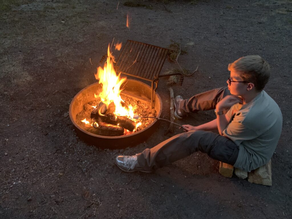 Und am Abend gibt es dann ein schönes Campinglagerfeuer. Lagerfeuer!