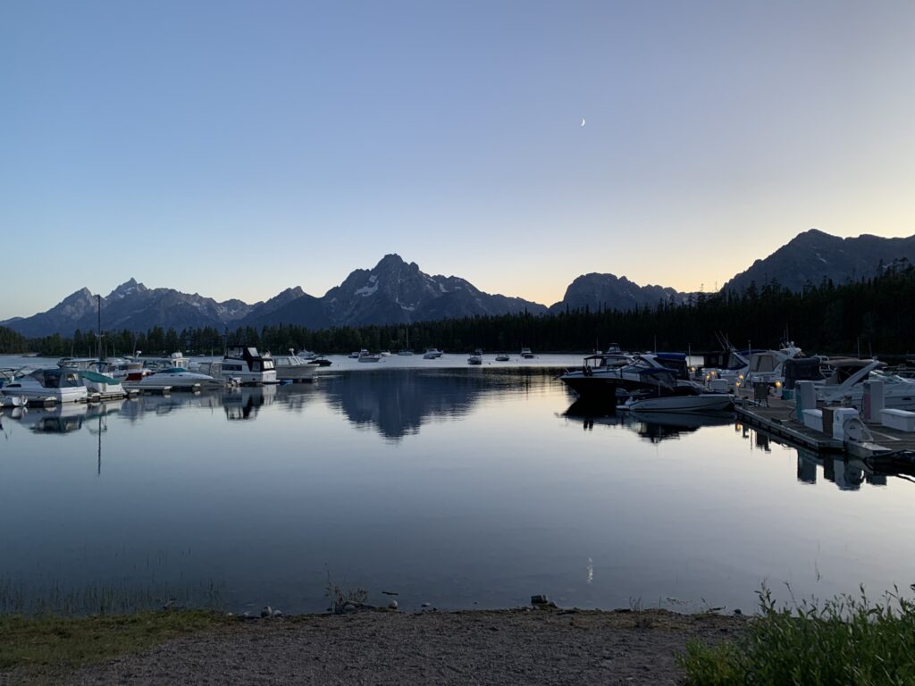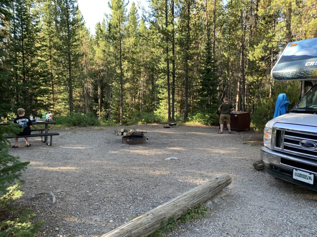 Die nächsten Tage werden wir auf dem Colter Bay Campground verbringen. Dies ist ein großer, gut ausgestatteter Campingplatz direkt am Jackson Lake, der sowohl Zeltplätze als auch einen Wohnmobilbereich hat und Annehmlickeiten wie einen General Store, Restaurants, Duschen, eingeschränktes WLAN und Bootsverleih bietet.