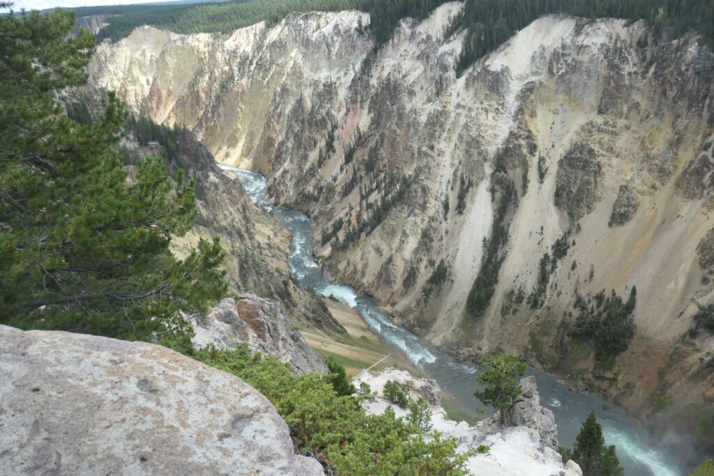 Am nächsten Morgen kommen wir erst spät los und widmen uns dem Grand Canyon of the Yellowstone. Wir machen mehrere kleinere Trails hintereinander weg und kommen auf diese Weise so nah wie möglich an die Upper und Lower Falls heran. Wir merken allerdings recht schnell, dass wir auf über 2000 Meter Höhe sind: ist doch alles anstrengender in dieser Höhe, wir kommen ganz schön ins Schnaufen.