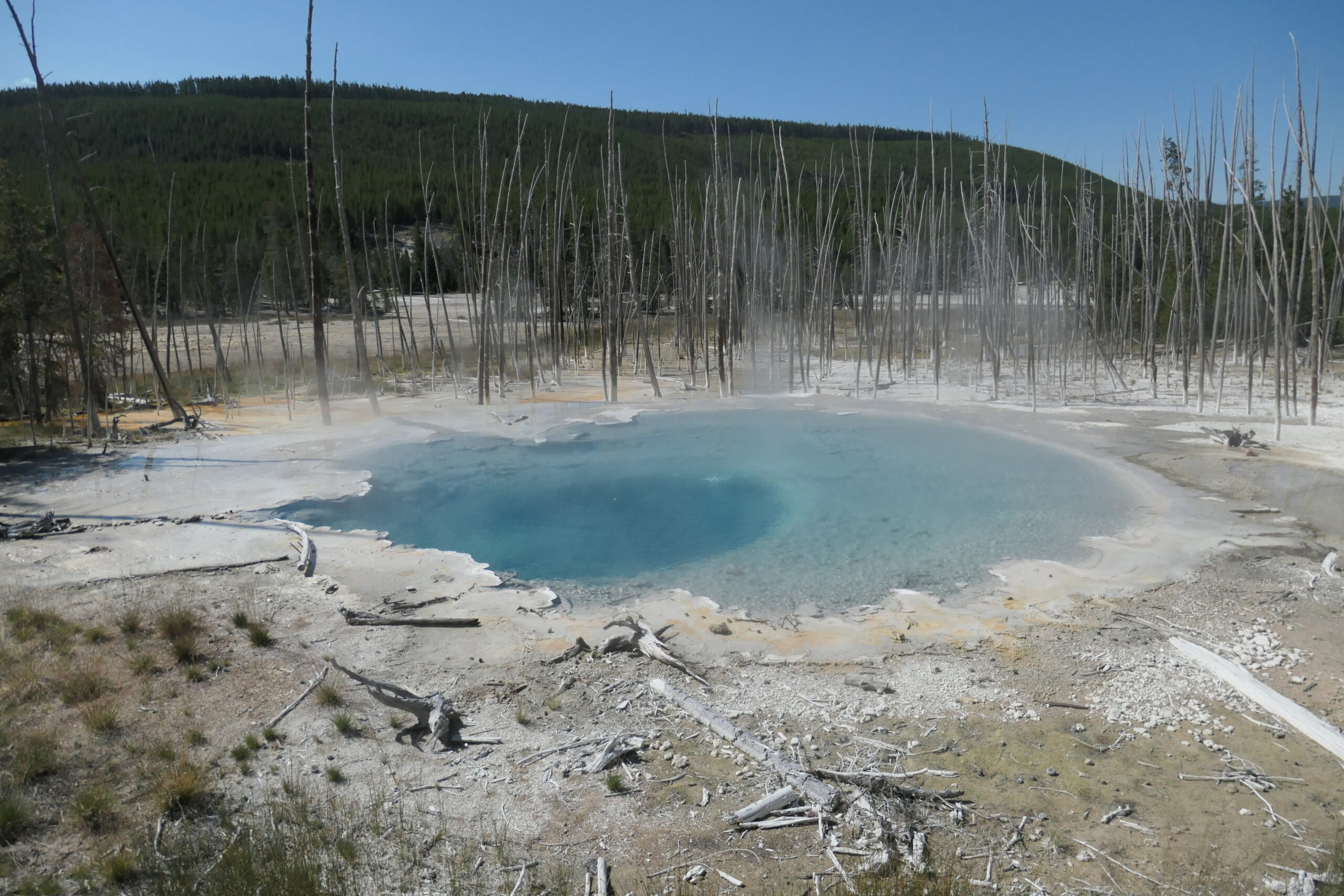 Auf dem Weg zum Grand Teton NP halten wir noch am West Thumb Geysir mit dem Fish Cone und ? Pool.