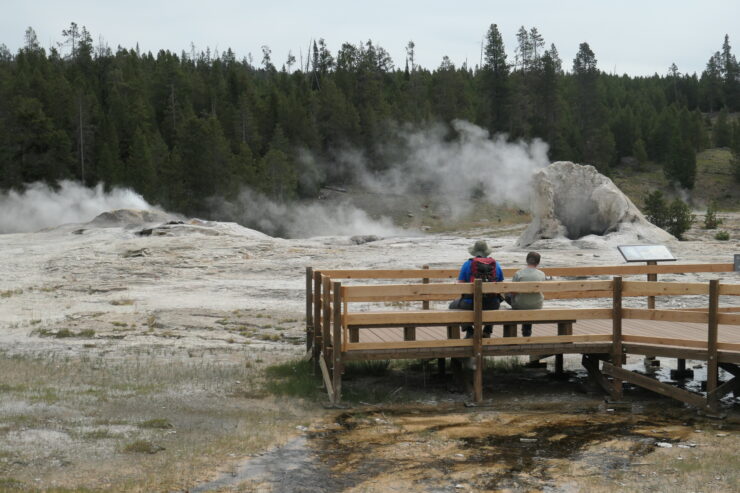 Insgesamt ist es schon Wahnsinn, was im Old Faithful für ein Kommen und Gehen, ein touristischer Betrieb herrscht – wäre ich hier Gast, würde mich das extrem stören.