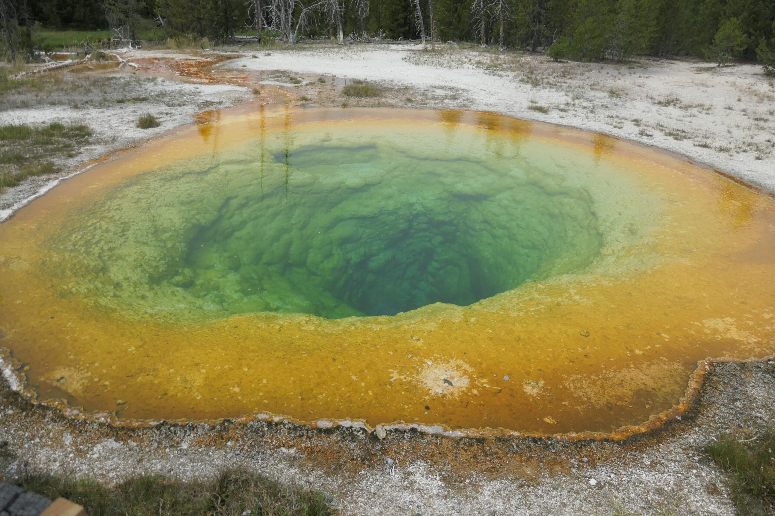 Als der Old Faithful sich verabschiedet hat, gehen wir von dort aus teils über asphaltierte Wege, teils über Boardwalks zu weiteren heißen Quellen wie z.B. dem Castle Geysir und dem bekannten bunten Morning Glory Geysir. Leider bemerken wir erst später , dass wir die Strecke auch super hätten mit Leihrädern zurücklegen können. Das wäre ein Spaß gewesen, so wie wir in Mexiko mit den Rädern von Pyramide zu Pyramide gefahren sind.